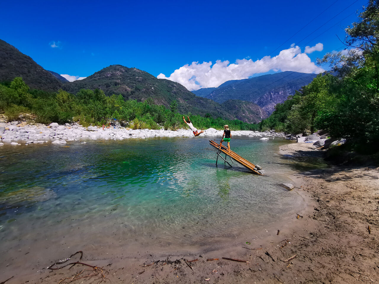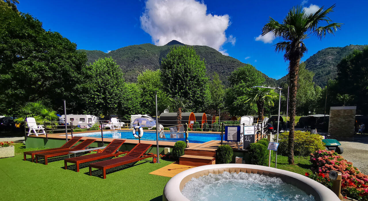 Il campeggio si trova immerso nel verde e all'ombra del sole d'estate. Le parcelle sono vicine al bordo del fiume Melezza in un ambiente naturale. Nelle vicinanze numerosi pozzi d'acqua frizzante facilmente accessibili vi aspettano per un rinfresco. Nel campeggio ci sono diverse strutture, tra le quali una buvette e un piccolo negozio per le vostre piccole compere. Ogni mattina disponiamo di pane fresco e cornetti per la colazione. Locarno e Ascona si trovano a soli 5 Km dal campeggio e sono serviti da un servizio bus.