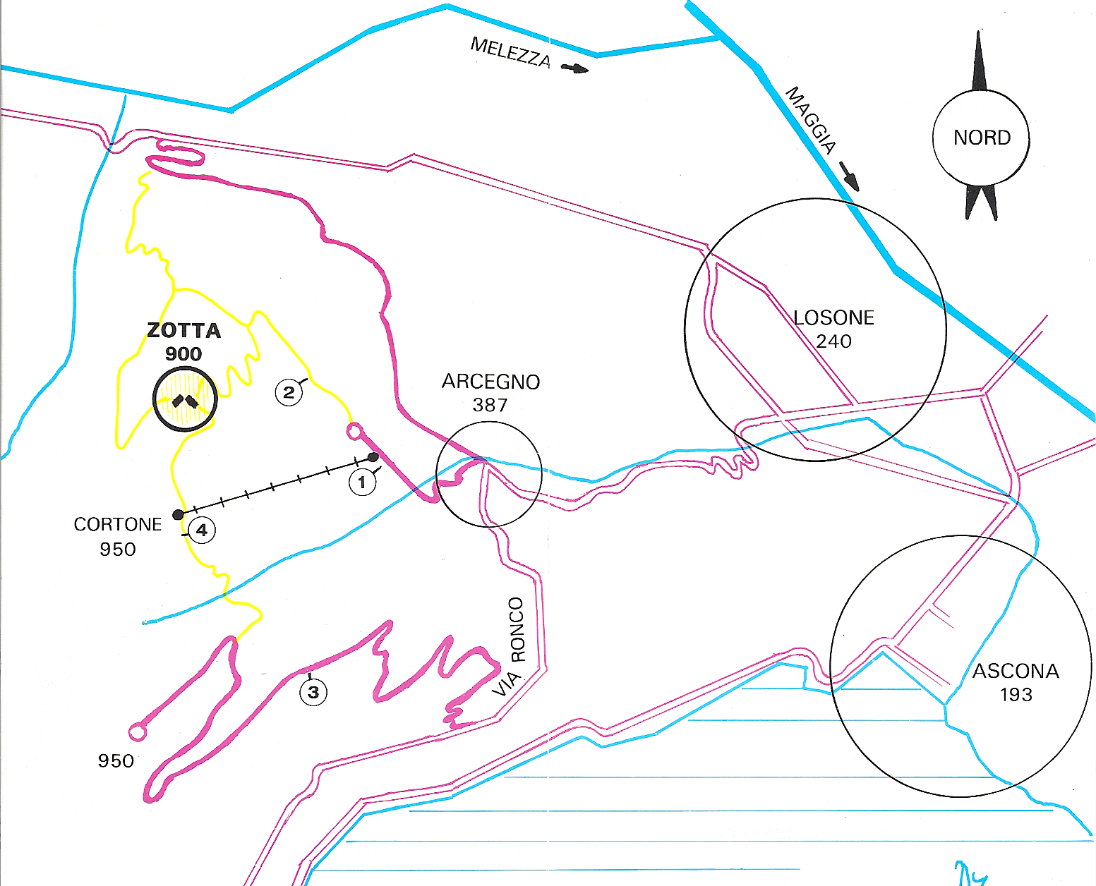 Da Arcegno via Ronco s/A. seguendo la strada carrozzabile Nr. 3 e proseguendo poi per il sentiero Nr. 4.